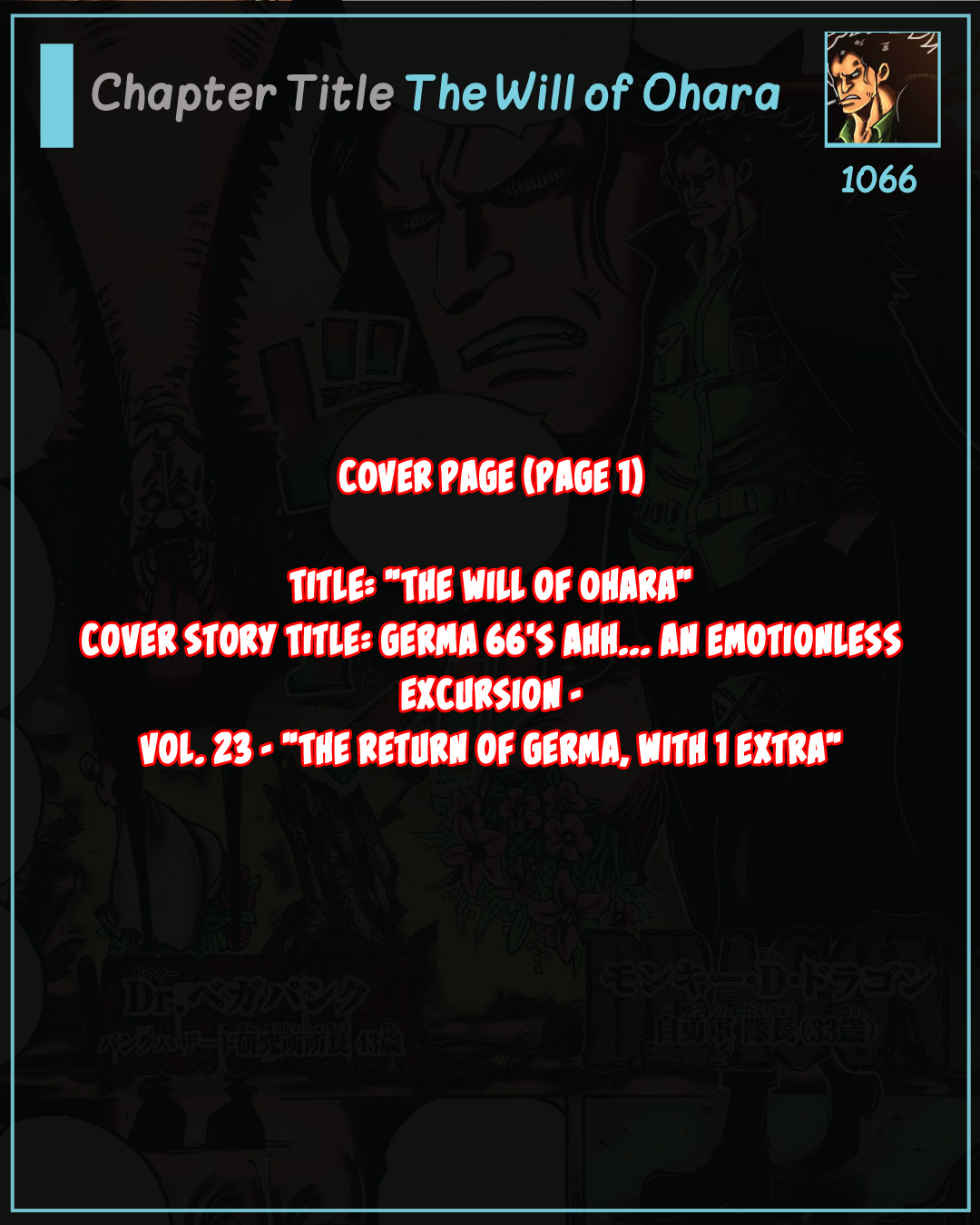 Sabo continues his call. One Piece chapter 1066s spoilers reveal a connection between Vegapunk and Dragon who crossed paths in Ohara after the. One Piece Manga Chapter 1065 Spoilers Summary.