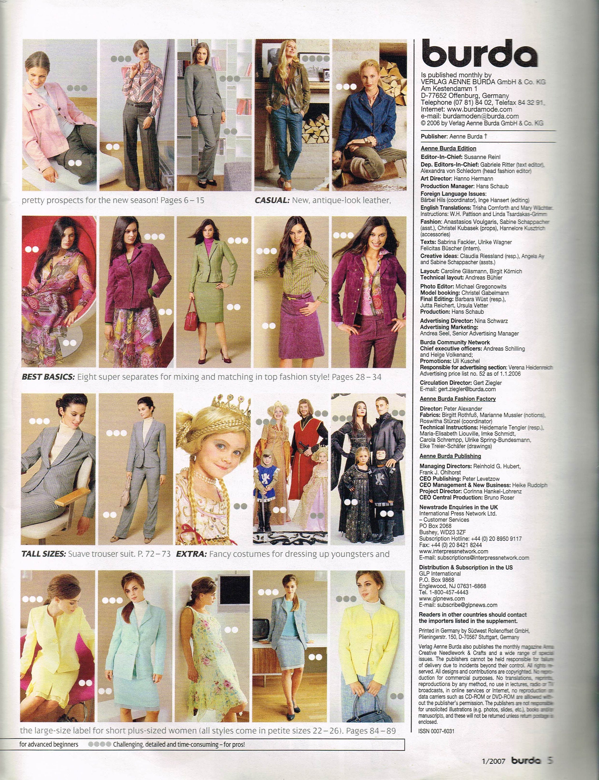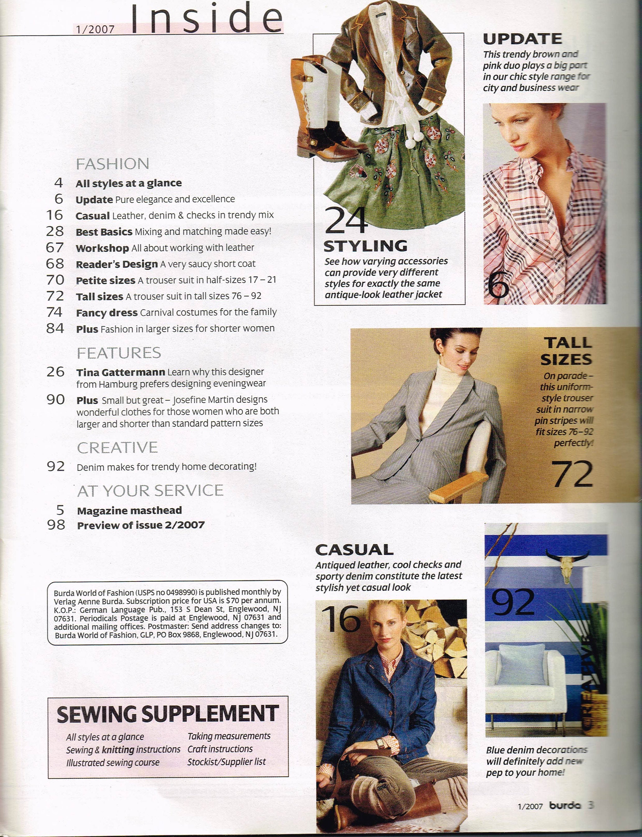 January 2007 Burda World Of Fashion Sewing Pattern Magazine Etsy Norway